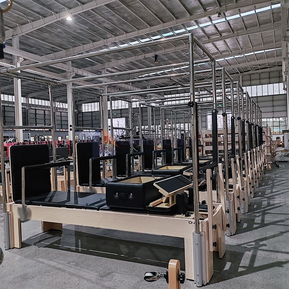 Maple 3 in1 Cadillac Pilates Reformer levererar en komplett pilatesträningslösning genom att integrera en reformer, Cadillac och tornsystem i en högpresterande enhet. Tillverkad med massivt lönnträ erbjuder denna Maple 3 in1 Cadillac Pilates Reformer exceptionell hållbarhet, elegant design och pålitligt stöd för studior, sjukgymnaster, gym och hemmautövare.