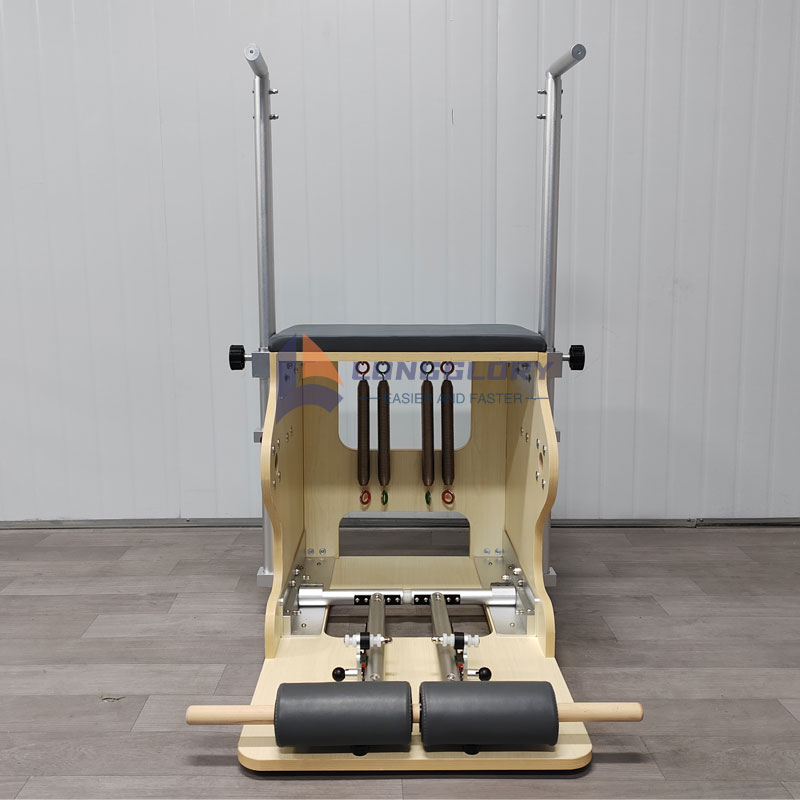 3. Pilates stol: Design Essence: Integrerar en pedal, justerbara fjädrar, halkfria handtag och en bekväm sits, med en smart design som balanserar funktionalitet och bärbarhet. Träningsfokus: betonar att stärka unilateral extremitetskoordination och dynamisk balans, exakt skulptera höft- och benlinjer och djupaktivera kärnmusklerna. Användningshöjdpunkter: Kompakt och utrymmesbesparande, speciellt lämplig för hemmiljöer; flexibelt justerbart motstånd anpassar sig till olika träningsstadier. Klassiska rörelser: Step-up-press (luftkudde) och balansträning på ett ben förbättrar styrkan och balanskontrollen i underbenen.